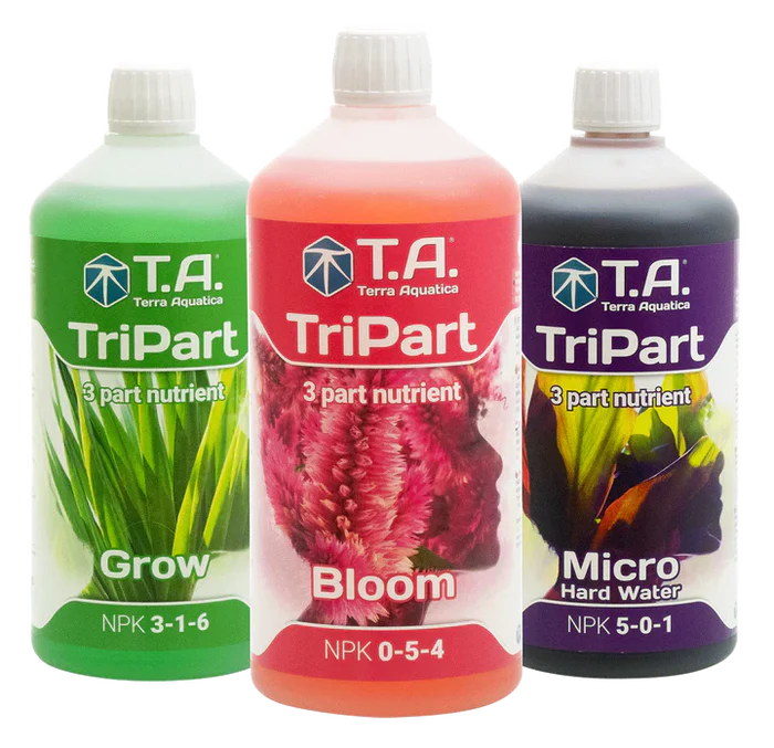 Terra Aquatica TriPart® is a professional 3-part liquid nutrient system trusted by growers worldwide for precision feeding and maximum control at every stage of plant growth. Consisting of TriPart Grow, TriPart Bloom, and TriPart Micro, this system allows you to adjust feeding ratios according to your plant’s needs—from seedling through flowering—delivering complete nutrition in any growing medium.